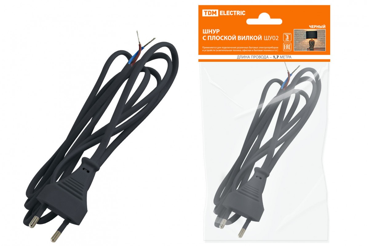- Шнур выполнен из провода ШВВП сечением 0.75 мм2.