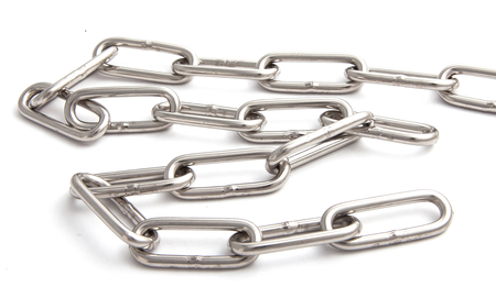 Внутр. длина звена 26 mm Внешн. ширина звена 12 mm Рабочая нагрузка: 55 кг Разрушающая нагрузка: 320 кг Приблизительный вес: 0,15 кг/м. Цепь стальная общего назначения, оцинкованная, длинное звено. Применяется в качестве растяжки. Не выносит ударных нагрузок.