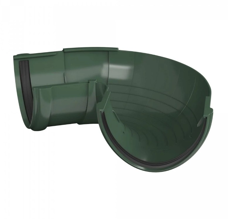 Основная функция Угла желоба 90 ТН ПВХ, зеленого - изменения направления потока воды. Монтируется на внешних и внутренних углах кровли.